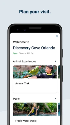 The Discovery Cove App is your must-have in-park companion for your entire experience. It’s free and easy to use.
