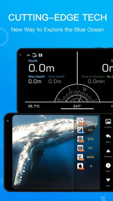 It's really practical. Combined with smartphone diving case, It shows your real-time depth, time and ascent speed. You don't need to be hurry-scurry to switch between them any more. Of course, another clean dive computer interface is provided when you are not taking photos.