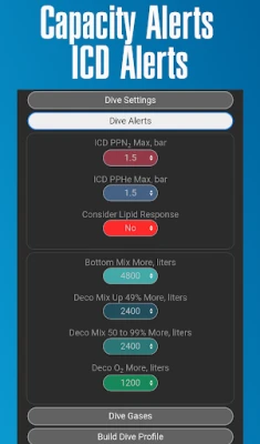 PPO2 Min\Max, PPN2, ICDHe, ICDN2 Limits with your Dive Plans