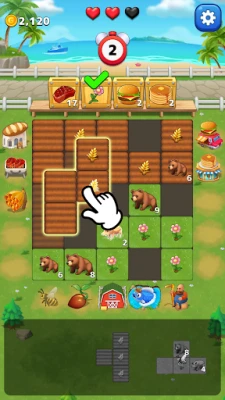 Solve the block puzzle skillfully, raise crops and animals, and harvest more resources. Respond to the requests of the residents, earn Gold, and acquire new items.