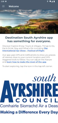 The perfect travel companion for visiting South Ayrshire. Our app uses GPS and notifications to show places of interest close to your current location and GPS-triggered trails to follow.