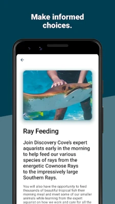 The Discovery Cove App is your must-have in-park companion for your entire experience. It’s free and easy to use.