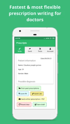 1. Every prescription is saved. You may search with any keyword within your past prescriptions such as patient name, disease name, medicine name, etc.