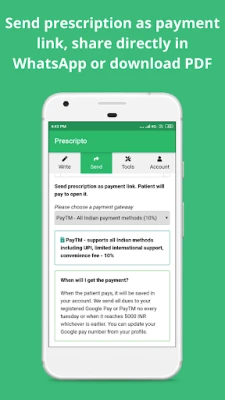 1. In prescripto, every prescription that you create can be converted into a unique payment link containing information of your consultation fees. You can choose different fees for any prescription (even can set to zero).