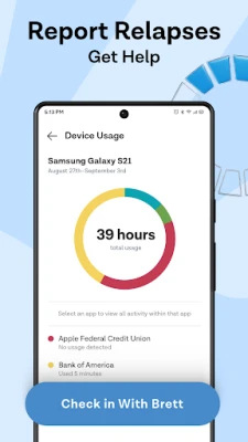 ● Report contains a button for your accountability partner to “Check In” when if they see something concerning