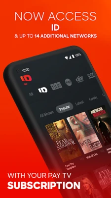 "Catch up with your favorite ID shows anytime, anywhere with the all-new ID GO app - and now get access to up to 14 additional networks including TLC, Science Channel, Travel Channel, Discovery and more - all in one app. It’s FREE with your pay TV subscription.
