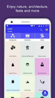 All features and images in Israel Country Guide are available offline. This Israel Travel App is for the globetrotters who go by the quote, “All journeys have secret destinations of which the traveler is unaware”. With Israel Tourist Guide, Unveil the Veiled places, Connect with plethora of people, understand culture, art and history, Speak with natives in their language, relish the authentic food and take delight in the festivities.