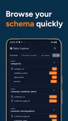 - Write SQL queries using the mobile-friendly SQL editor, or write SQL queries manually.